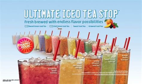 Happy hour just got happier happy hour any time means you get 1/2 price drinks and slushes any time you order in the app or online as a registered user! For example, one of my go drink mixes is adding mango syrup to the diet limeade. Lipton peach iced tea 16.9 oz bottlestotal fat 0g0%sodium 180mg8%total sugars 25g47% protein 0g1 more row.